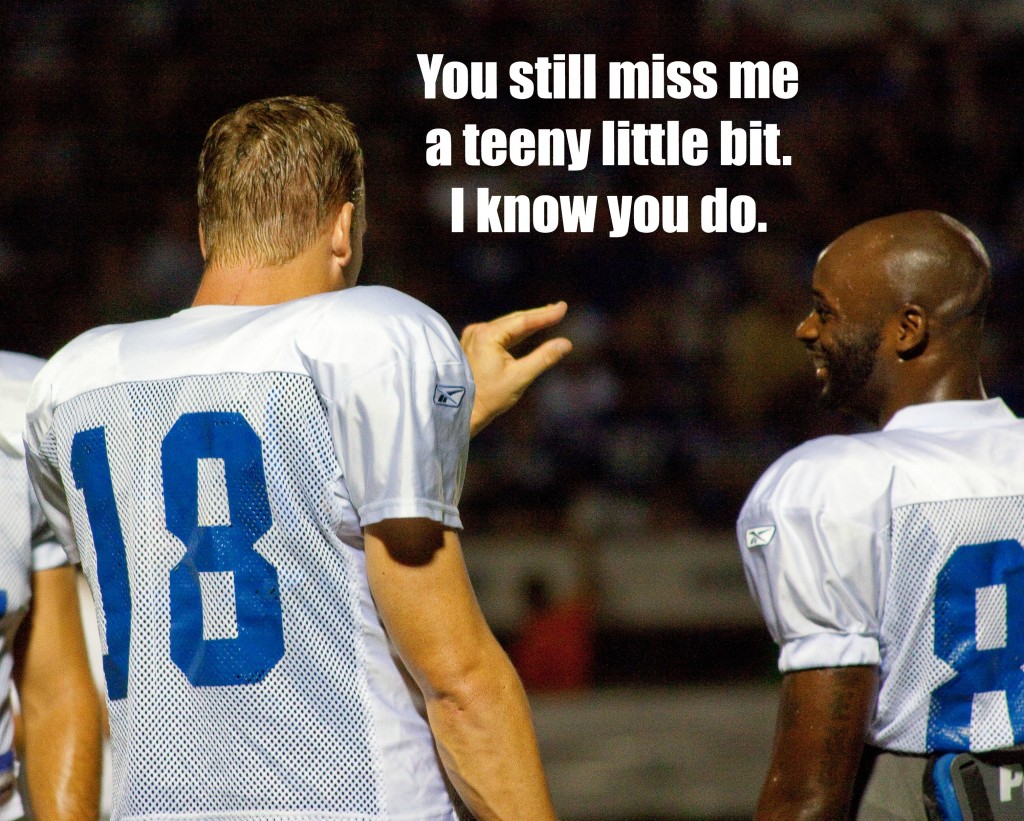 Breaking up with Peyton Manning was the hardest (sports) thing I’ve ever done. Harder than seeing Tom Brady reign victorious over us too many times. Harder than losing Super Bowl XLIV to the Saints. Harder than watching Curtis Painter take a snap. You get the idea. As if losing Peyton wasn’t hard enough, I had to sit by and watch as nearly the entire team I knew and loved was dismantled. Goodbye, Jacob Tamme. Goodbye Jeff Saturday. Goodbye Dallas Clark. Thank God Reggie Wayne stayed. He was the girlfriend I called, drunk at 2 a.m. “Why’d they leave me? Why, Reggie, why?”